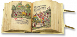 Die erste illustrierte Schweizer Chronik zeichnet sich durch ihre unbekümmerte und frische Bildsprache aus, die sich besonders in den meist ganzseitigen Illustrationen von Dingen des alltäglichen Lebens offenbart. Die Bilderchronik endet im Jahr 1470.