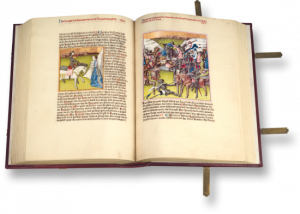 Bereits im 13. Jahrhundert verfasste Guido de Columnis seine Troja-Erzählung, deren Popularität an der Vielzahl ihrer Übersetzungen abzulesen ist. Die vorliegende Handschrift mit ihren bezaubernden Miniaturen entstand im Regensburg des 15. Jahrhunderts und kann gleichsam als Handbuch der höfischen Lebenswelt des Mittelalters gesehen werden.
