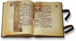 Um 800 an der Palastschule Karls des Großen entstanden, entwickelte sich der Codex Aureus auf Purpurseiten zum bedeutendsten Buch des Mittelalters: als Teil der Reichsinsignien spielte es bei jeder Königskrönung zum römisch-deutschen König eine zentrale Rolle.