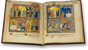 Für den französischen König Ludwig IX., den Heiligen, um 1250 geschaffen, gibt diese Bibel fast ausschließlich in Bildern die alttestamentarische Geschichte bis zu König David wieder. Besonders wichtig war Ludwig wohl die Darstellung kriegerischer Szenen, um seinen Kreuzzugsgedanken zu unterstreichen.