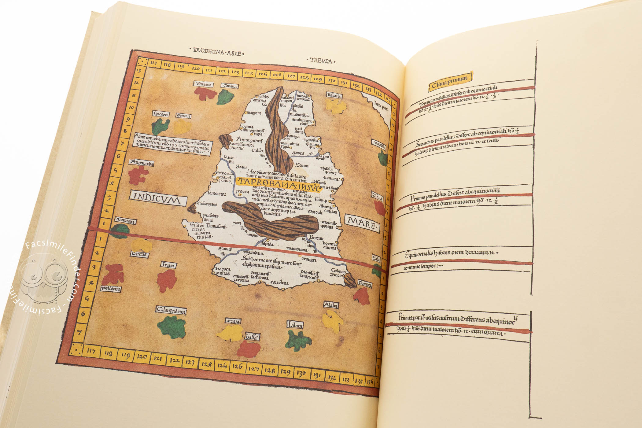 - Full-size color reproduction of the entire original document, Ptolemaei Tabulae Cosmographicae: the facsimile attempts to replicate the look-and-feel and physical features of the original document; pages are trimmed according to the original format; the binding might not be consistent with the current document binding.