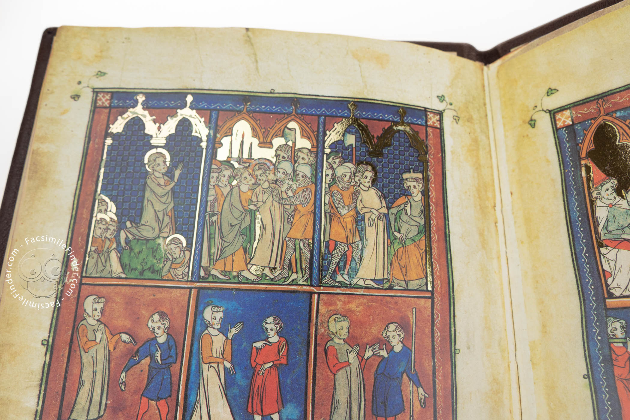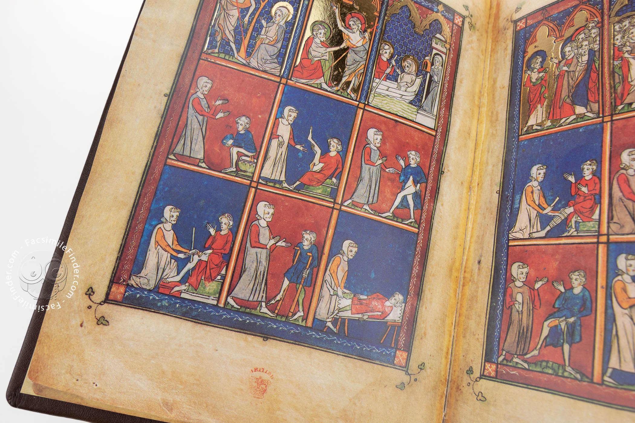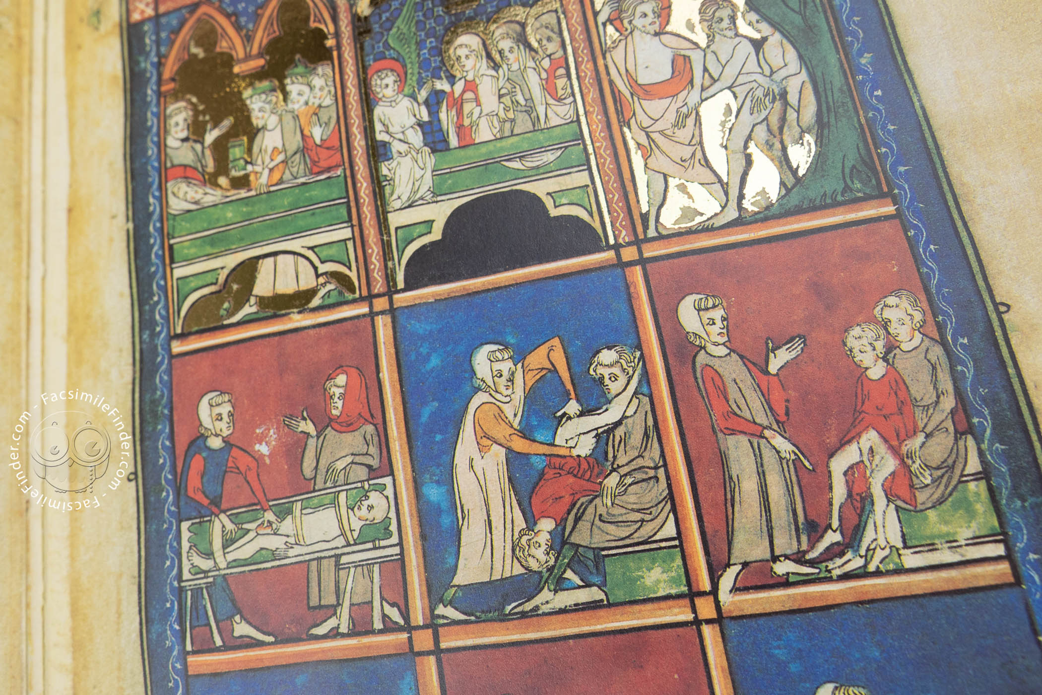 The Sloane Medical Collection is a luxuriously illustrated manuscript produced in France, probably Amiens, at the beginning of the fourteenth century. The book is a compilation of scientific and medical texts, including Rogerro Frugardo's Chirurgia and the Circa instans by Matthaeus Platearius. The twenty full-page and five smaller miniatures are painted in saturated pigments, primarily red and blue, with details in gold. The images are principally on medical subjects, including surgeries and illness symptoms, but some Christian narrative scenes are also present.