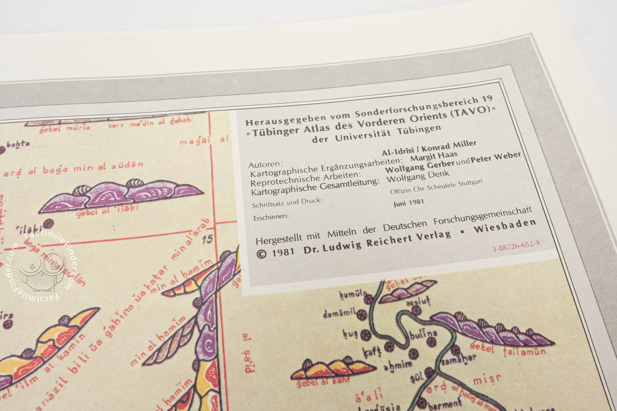 - Weltkarte des IDRISI (Charta Rogeriana) aus dem Jahre 1154 n. Chr. (Ausschnitt, das vom TAVO Erfaßte Gebiet) facsimile edition published by Reichert Verlag, 1981